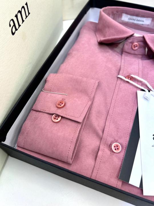Home Shirts Ami Logo Pink Premium Shirt With Brand Box Packing F3203-PI