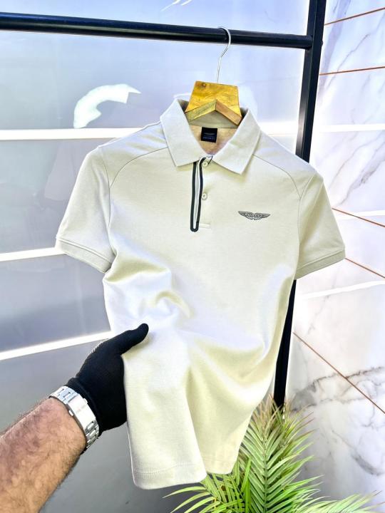 Home T-Shirts Aston Martin Hacket t Beige Polo Premium Collar Neck T-shirt F3049-BE1