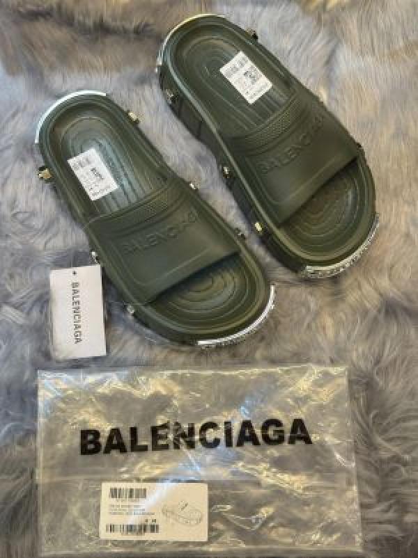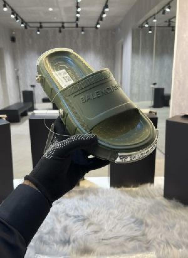 Balenciaga Clog Pool Embossed Logo Premium gren Slides