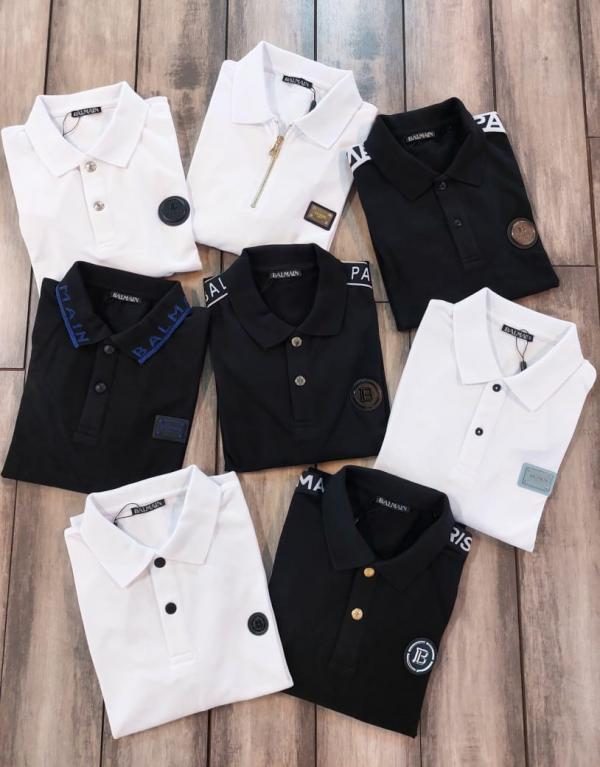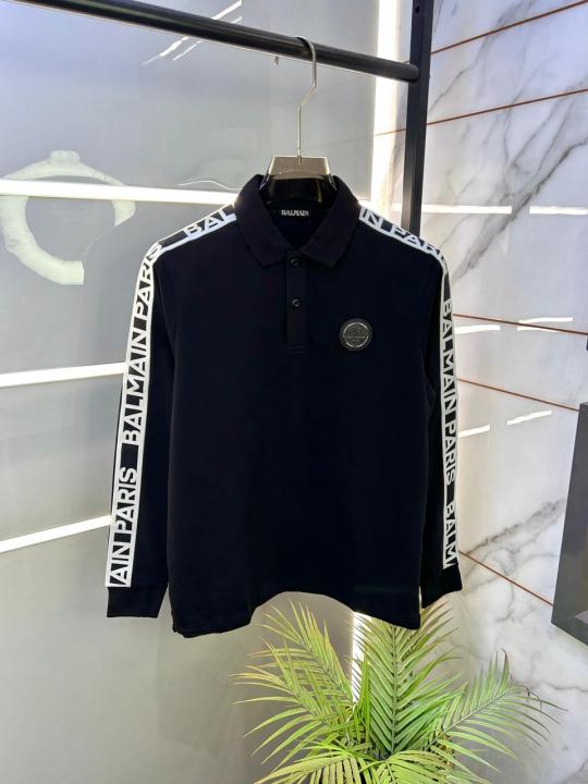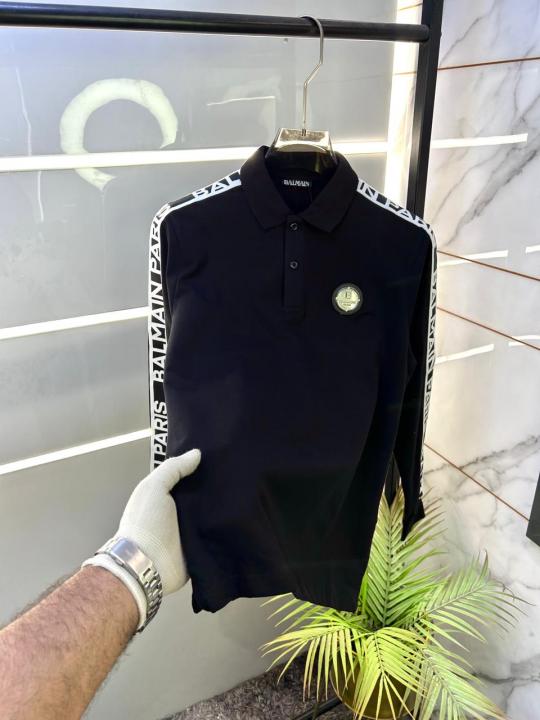 Home T-Shirts Balmai n Paris Black Polo Neck Full Sleeves Premium Collar T-shirt F3454-B1
