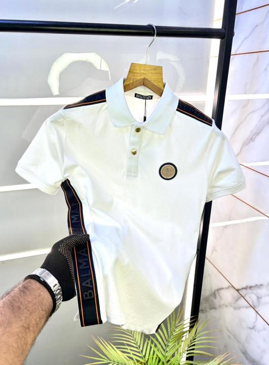 Balmai n Paris White Imported Premium Polo Collar Neck T-shirt F3126-W1