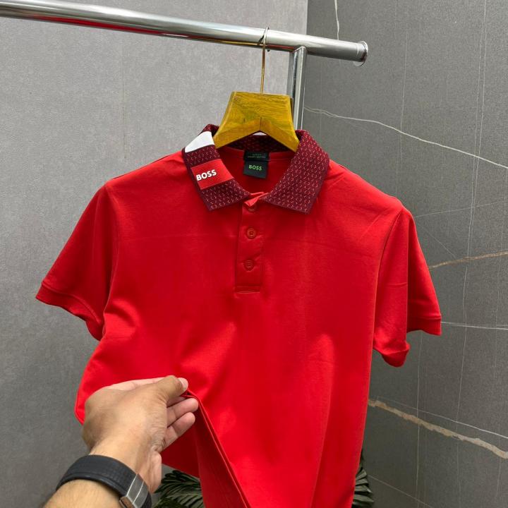 Home T-Shirts Bos_s Red Premium Polo Neck Tshirt 529