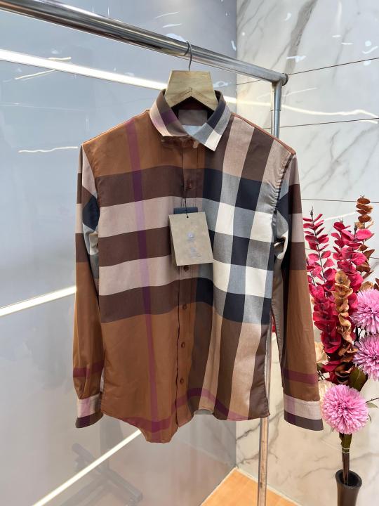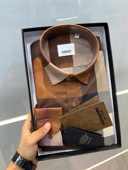 Burberr y Premium Imported Checks Shirt With custom Branded Button Tagging with Printed Design And Brand Packing 3808