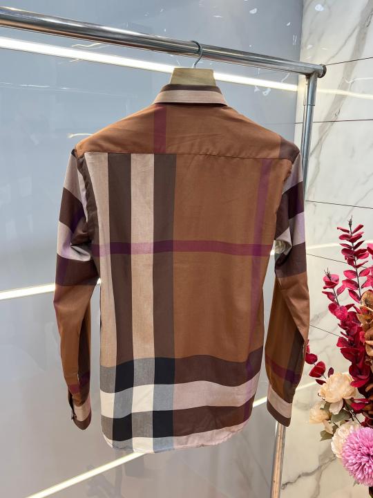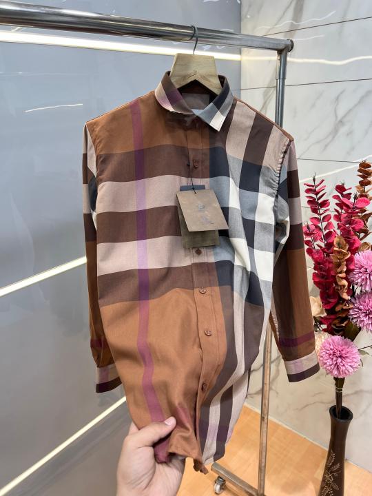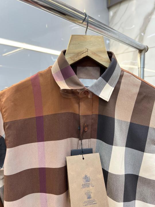 Burberr y Premium Imported Checks Shirt With custom Branded Button Tagging with Printed Design And Brand Packing 3803