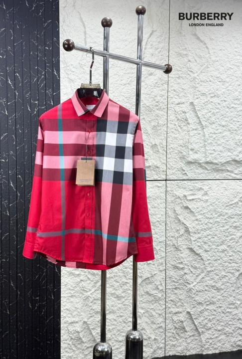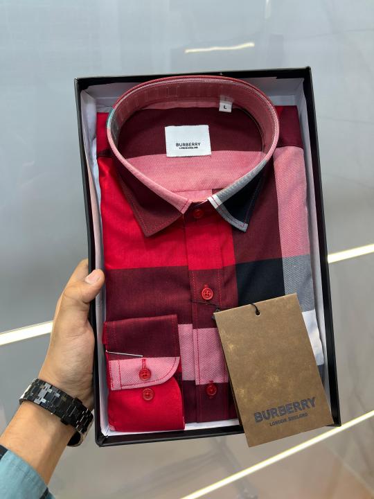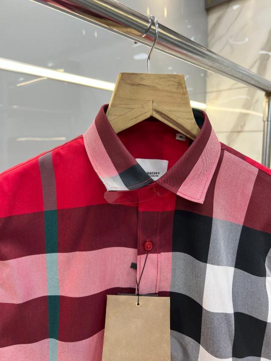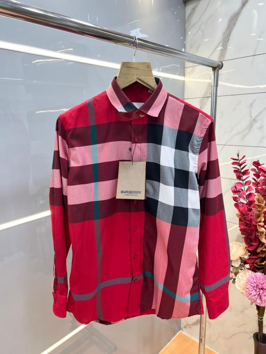Burberr y Premium Imported Checks Shirt With custom Branded Button Tagging with Printed Design And Brand Packing 3804