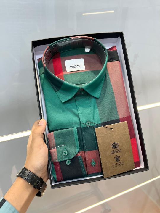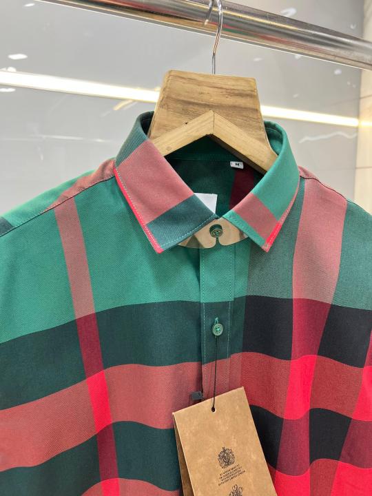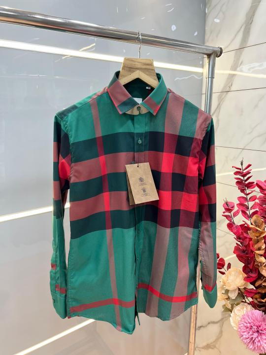Burberr y Premium Imported Checks Shirt With custom Branded Button Tagging with Printed Design And Brand Packing 3803