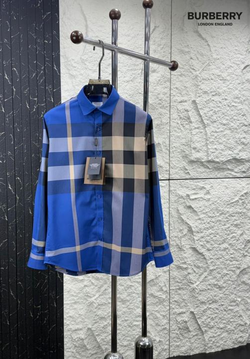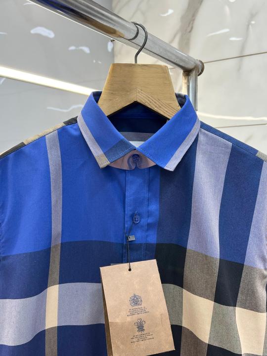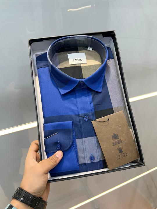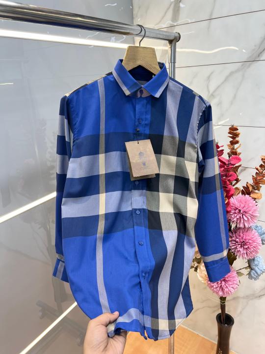 Burberr y Premium Imported Checks Shirt With custom Branded Button Tagging with Printed Design And Brand Packing 3803