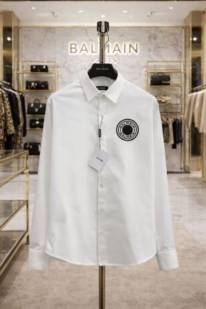 Balmai n Paris White Premium Imported Cotton Lycra Fabric Metal Logo Shirt with Brand Box and Carry Bag 3811