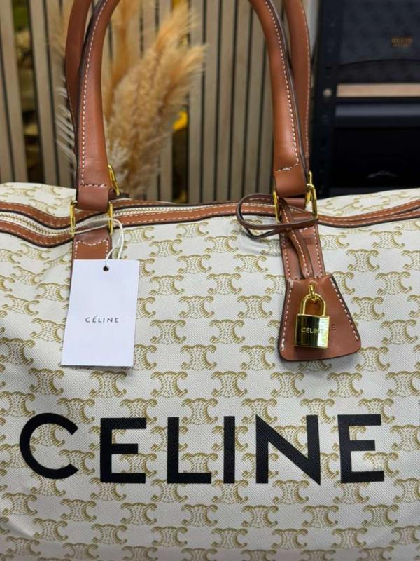 Celine Premium Quality Triomphe Canvas Duffle Travel Bag With Dust Bag (White Flower)