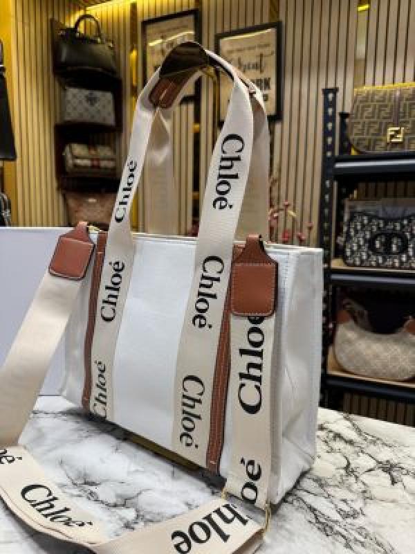 Chloe Woody Tote Bag With Box And Dust Bag (White) (V-8990)