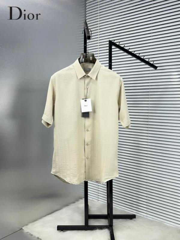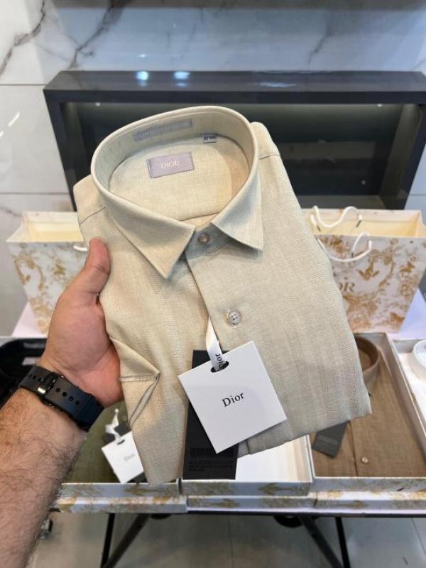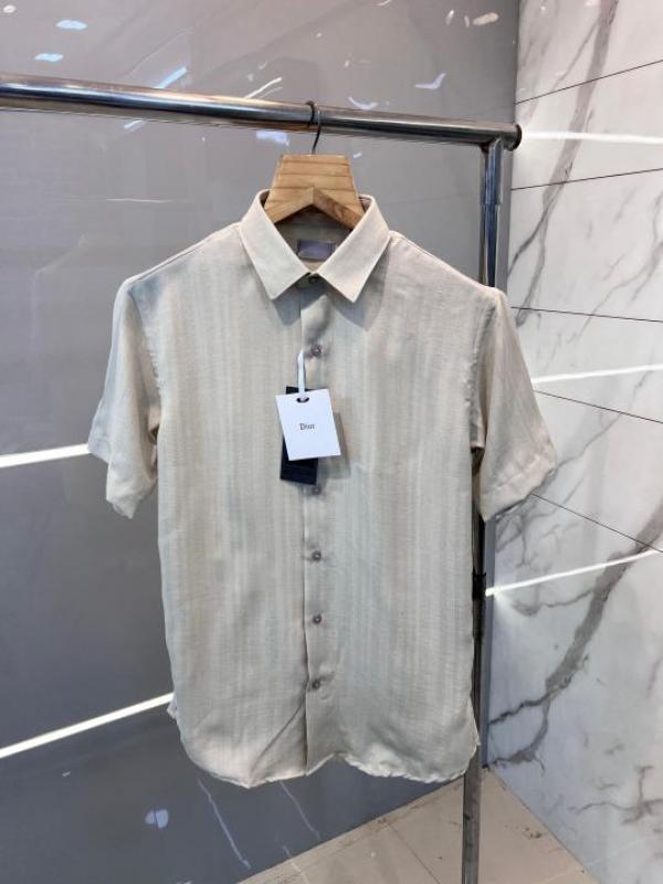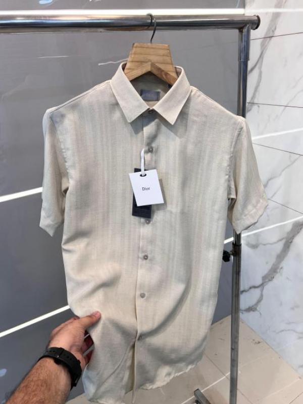 Christian Dio r Beige Premium Half Sleeves Shirt Linen With custom Branded Button Tagging And Brand Carry Bag 2356