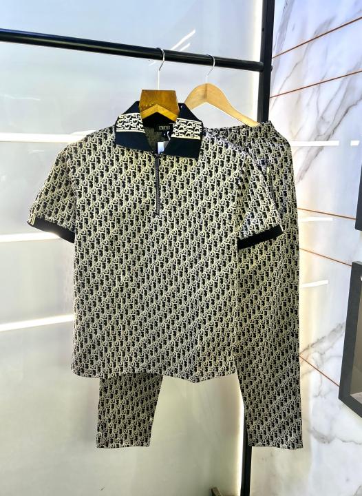 Home Premium Track Suits Christian Dio r Imported Monogram Print Gold Premium Track Suit Brand Carry Bag Packing F2762-GO