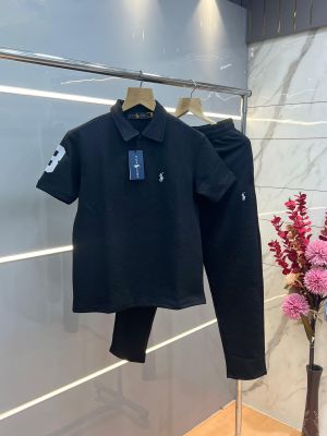 Ralph Laure n Black Imported Jacquard Fabric Allover Monogram Emboss Logo Tracksuit with Carry Bag 3721