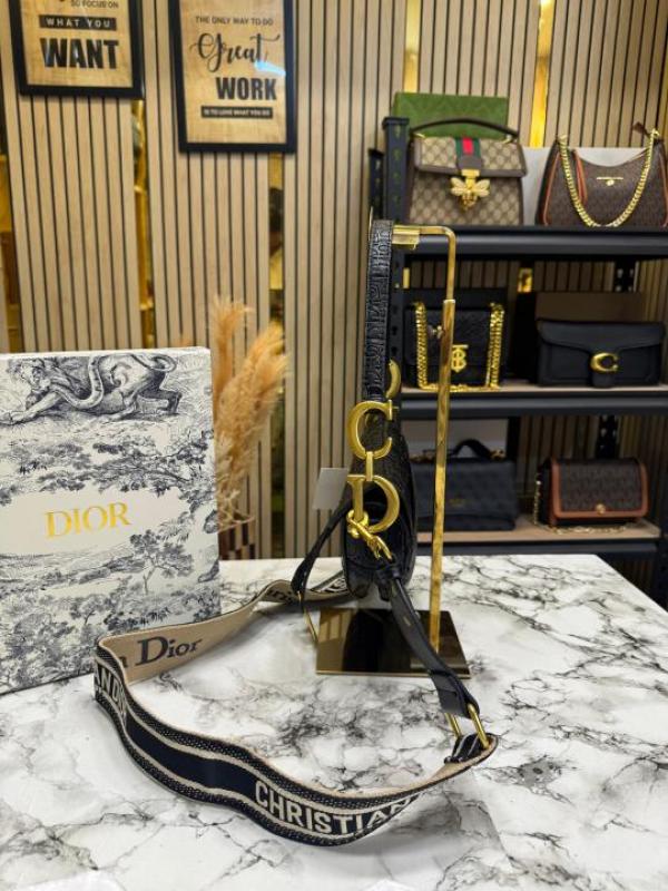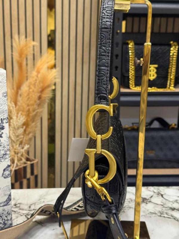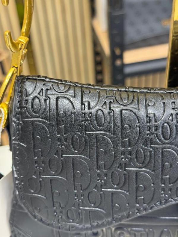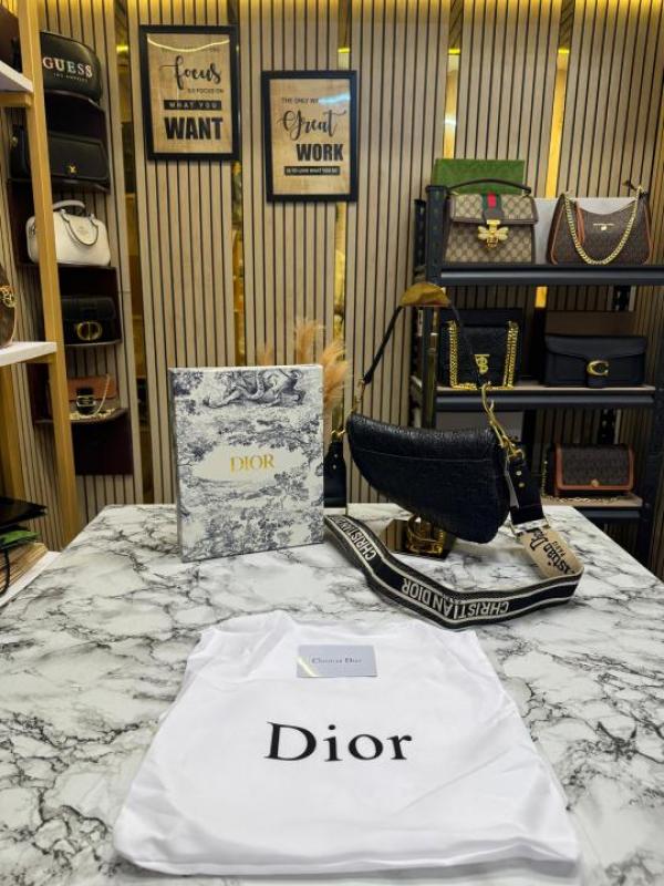 CHRISTIAN DIO_R SADDLE EMBOSSED WITH OG BOX AND DUST BAG PREMIUM QUALITY (BLACK) (V-D666)