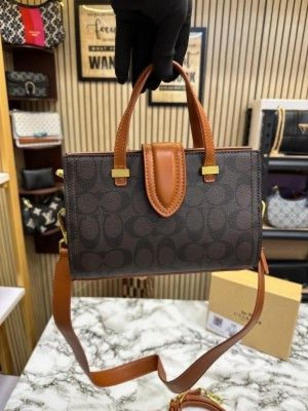 COAC_H TRENDY SIGNATURE SATCHEL BAG WITH SLIGHTLY DAMAGE BOX AND DUST BAG PREMIUM QUALITY (COFFEE BROWN)