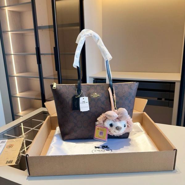 Coach_Brown_Fiona_Top_ZipperTote_With_OriginalBox_TeddyDisneyCharm_DustCoverPacking