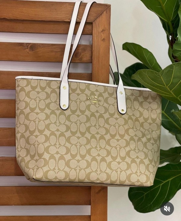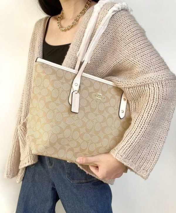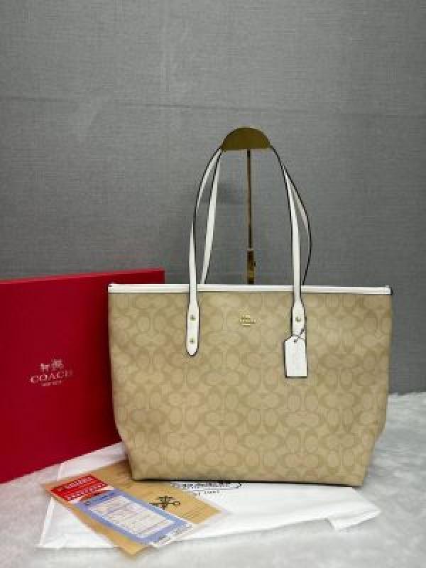 Coach_Signature_City_Tote_Bag_With_OG_Red_Box_(55398_Apricot_White)