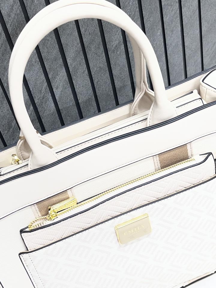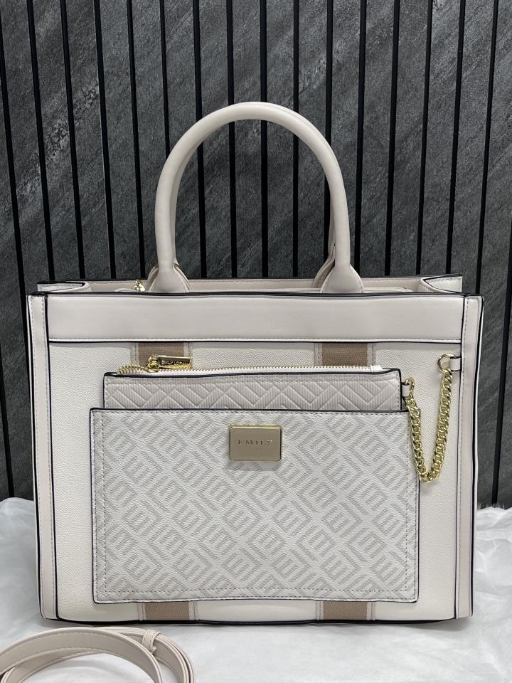 Emily Loran Beige Large Satchel Bag Highend Leather Handbag With Dust Cover Packaging
