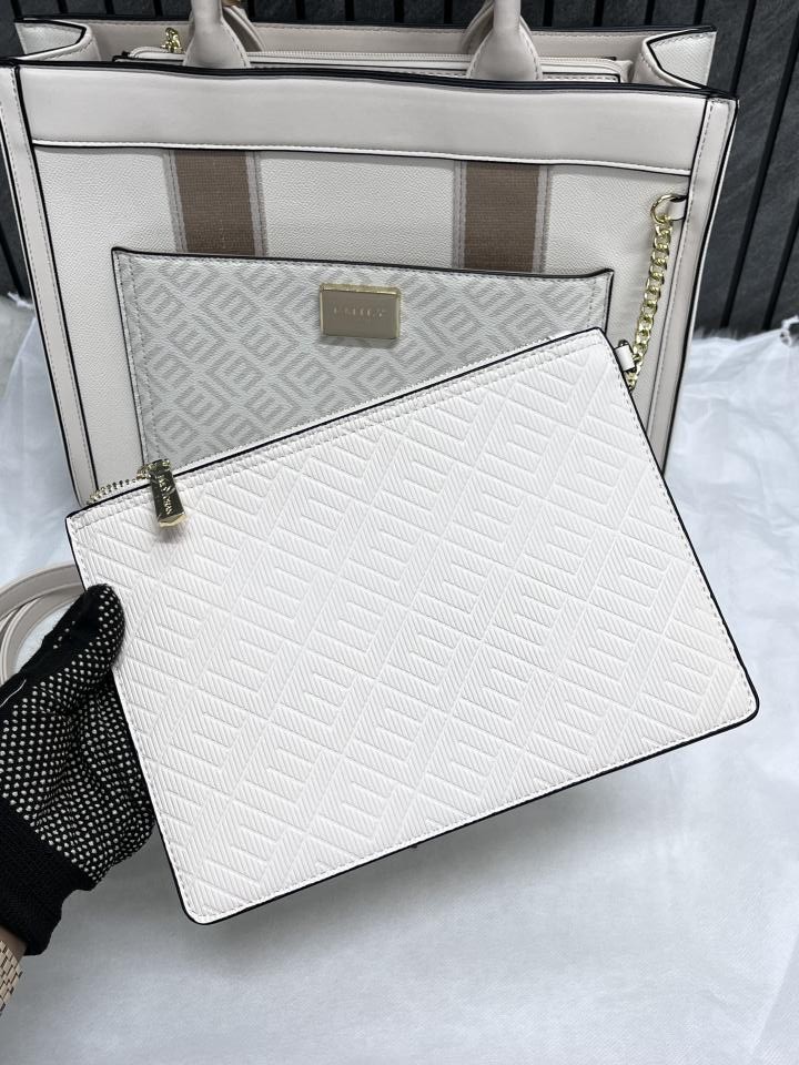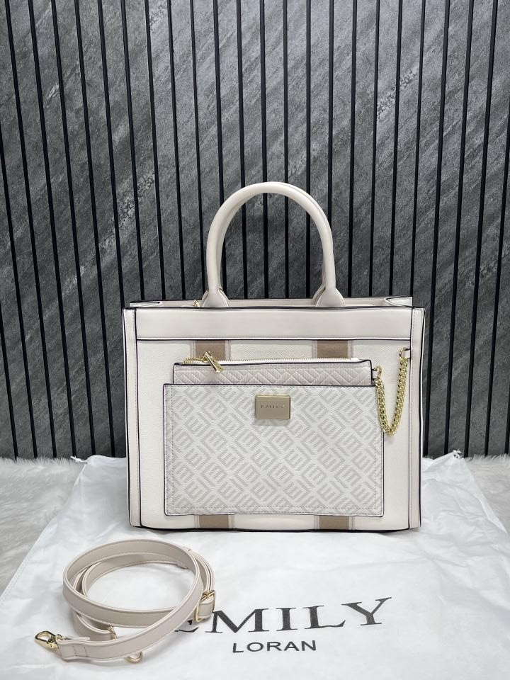 Emily Loran White Multi Large Satchel Bag Highend Leather Handbag With Dust Cover Packaging