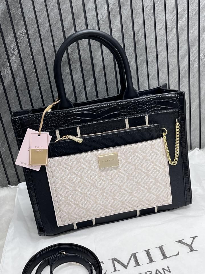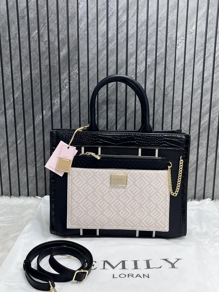Emily Loran Black Large Satchel Bag Highend Leather Handbag With Dust Cover Packaging