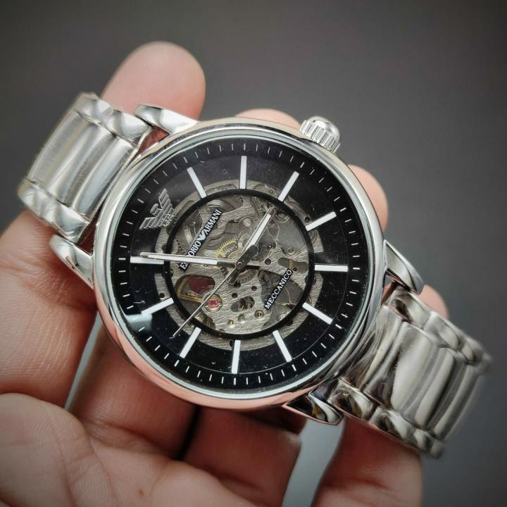 EMPORIO ARMANI MECCANICO AUTOMATIC SILVER BLACK DIAL