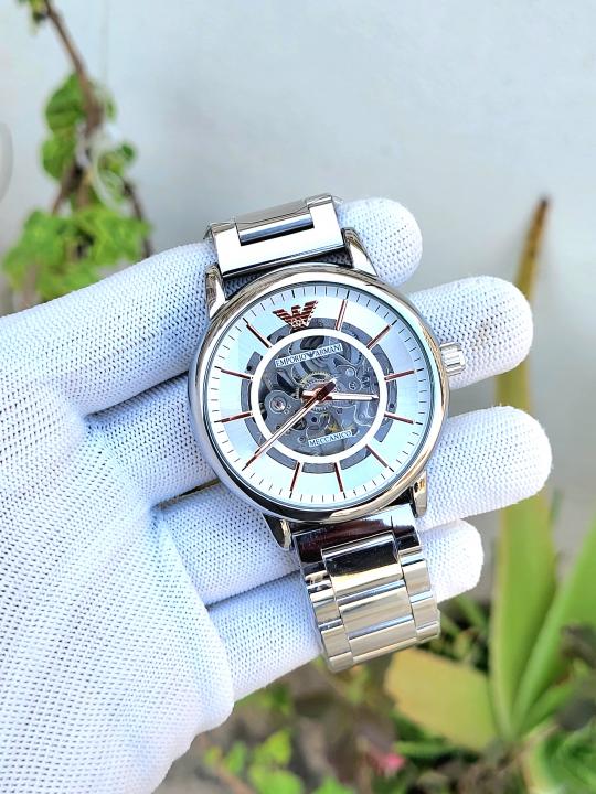 EMPORIO ARMANI MECCANICO AUTOMATIC SILVER ROSE GOLD WHITE DIAL