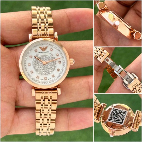 emporio armani_ rose gold white watch for her womens girls