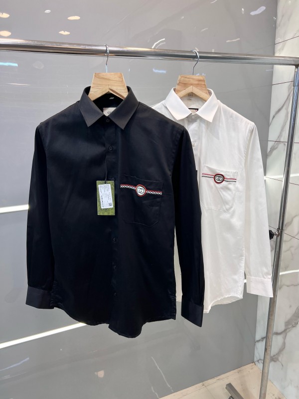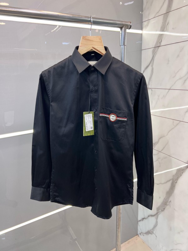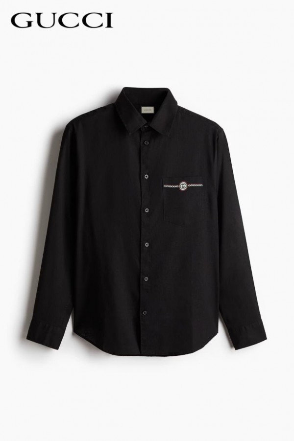 Home Shirts Gucc i Black Pocket Embroidered Designer Shirt with Brand Box and Carry Bag (1913)