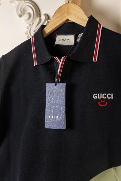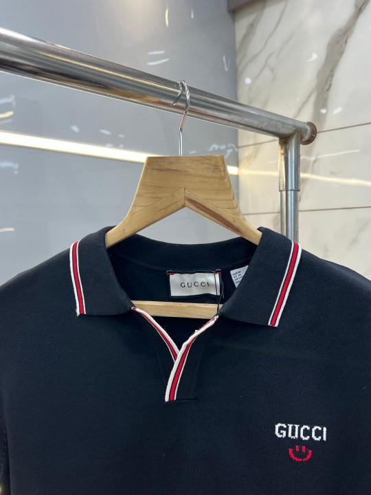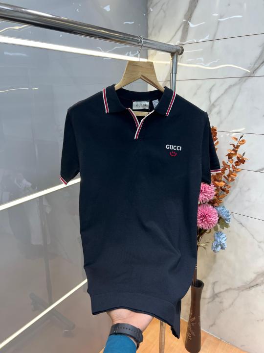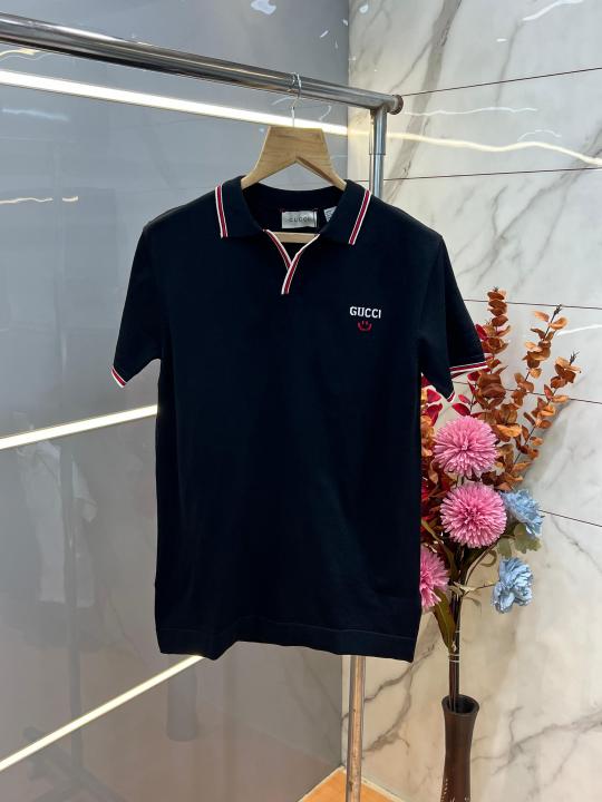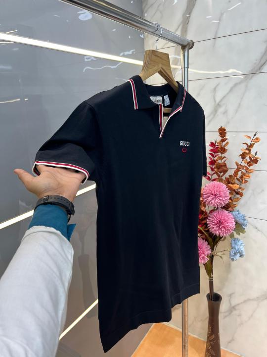 Gucc i Black Premium Imported Knitting Fabric Polo with Collar Design and Embroidered Logo 3918