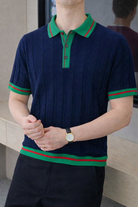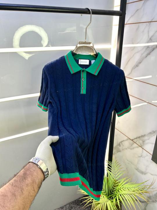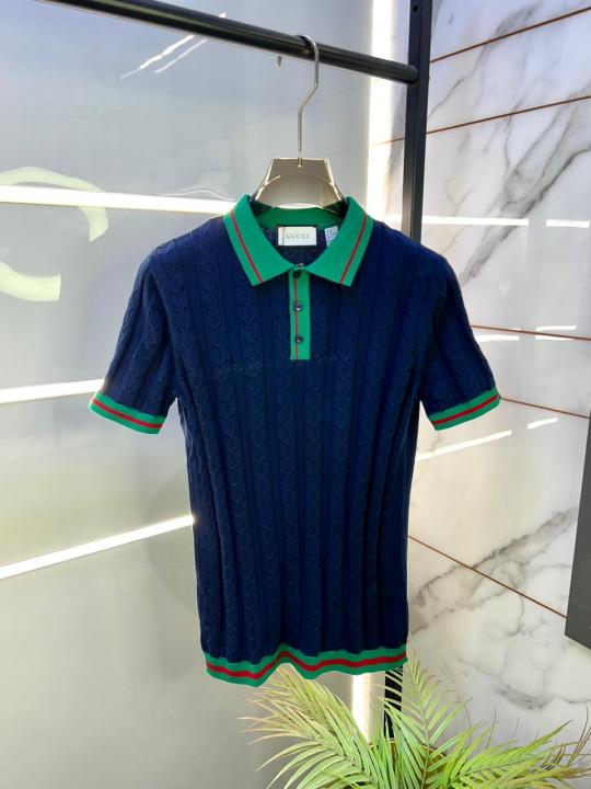 Gucc i Navy Imported knitted Premium Collar Neck Polo T-shirt F3487-NY
