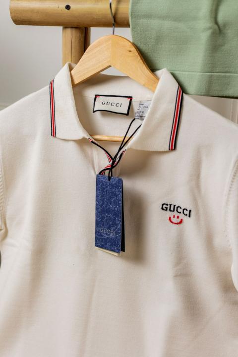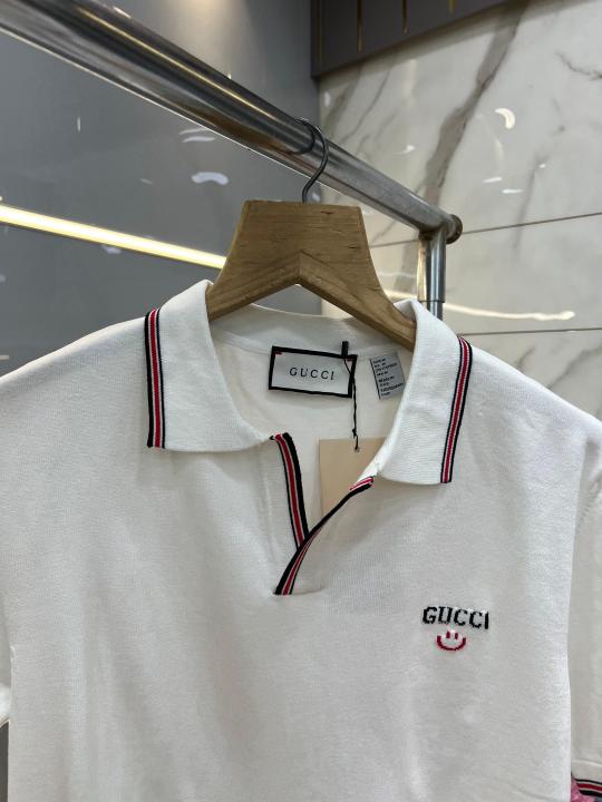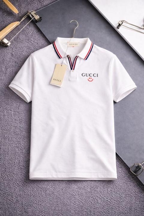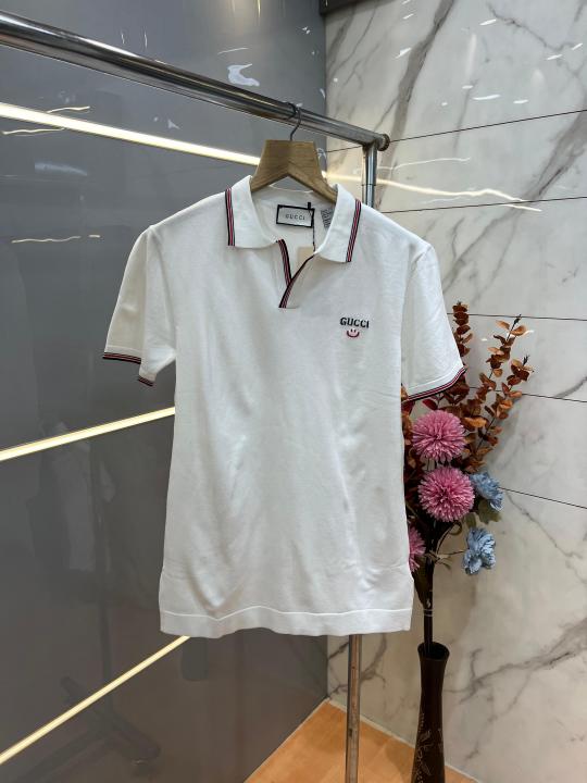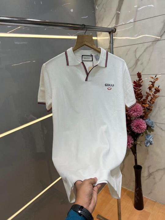 Gucc i White Premium Imported Knitting Fabric Polo with Collar Design and Embroidered Logo 3919