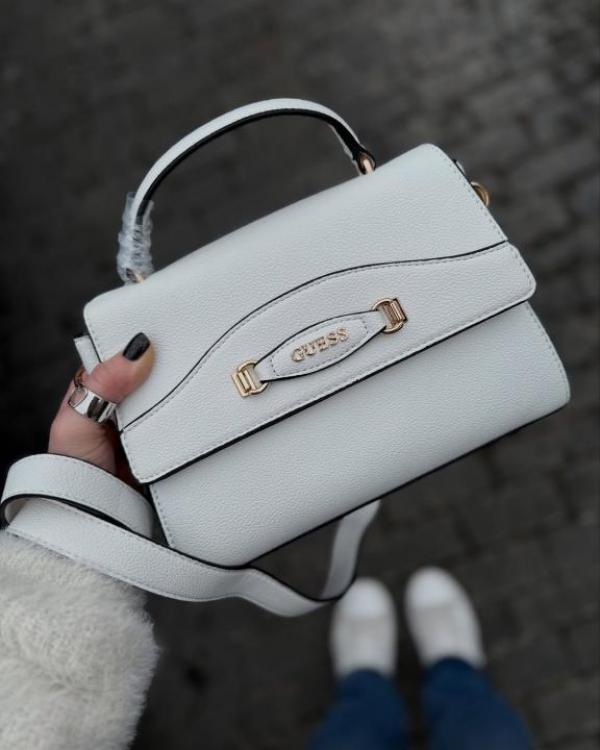GUESS EMERA LOGO FLAP BAG WITH BOX AND DUST BAG (WHITE) (V-2)