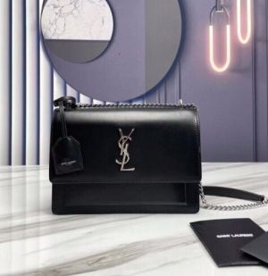 Ysl Saint Laurent Sunset Medium Leather Shoulder Bag With OG Box & Carry Bag Antique Silver Hardware Black Y2503