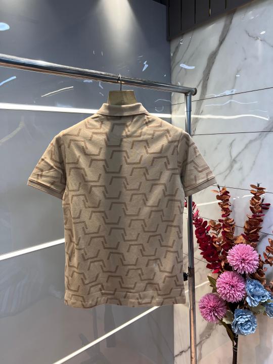 Home T-Shirts Hugo Bos s Cream Premium 240 gsm interlock cotton fabric Polo Tshirt with Allover Monogram Printed and Emboss Logo 3156