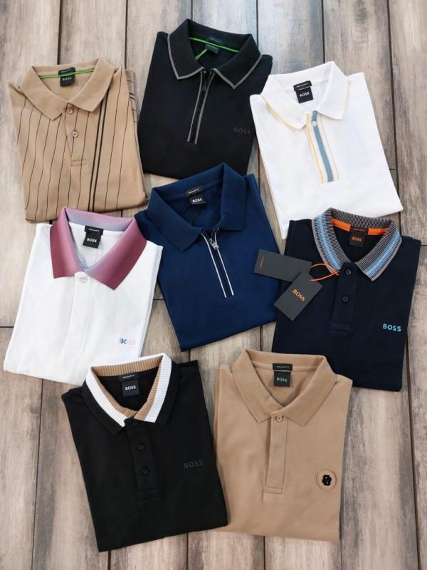 Hugo Bos s Black Premium 240 gsm interlock compact cotton fabric Polo Tshirt with Collar Design and Emboss Logo 3277