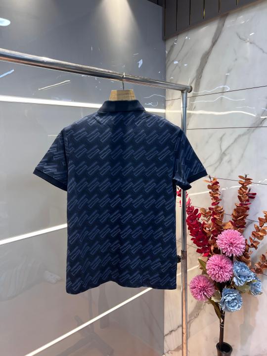 Home T-Shirts Hugo Bos s Navy Premium 240 gsm interlock cotton fabric Polo Tshirt with Allover Monogram Printed and Emboss Logo 3154