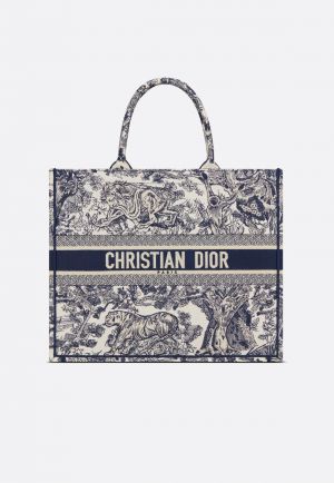 Dio_r Book Tote Blue and Ecru Toile de Jouy Reverse Embroidery 684