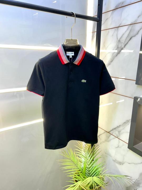Lacost e Black Polo Premium Collar Neck T-shirt F3388-B2