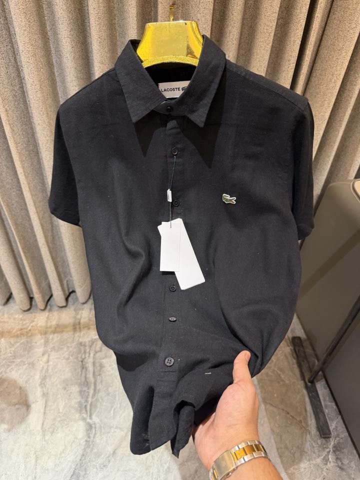 Lacost e Black Pure Linen Half sleeves Shirt