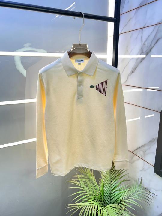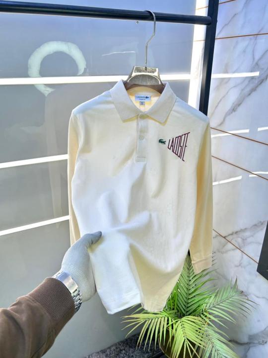 Home T-Shirts Lacost e Cream Polo Neck Full Sleeves Premium Collar T-shirt F3427-CR