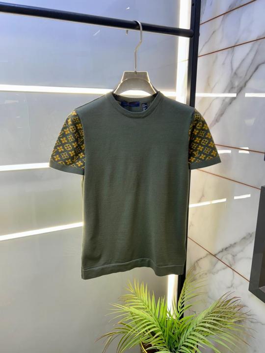 Home T-Shirts Loui s Vuitton Imported Green knitted Super Premium Round Neck T-shirt F3516-GR
