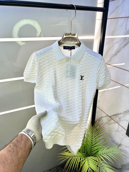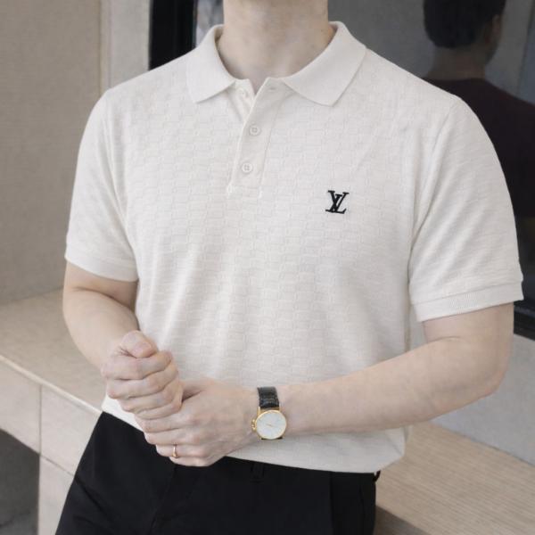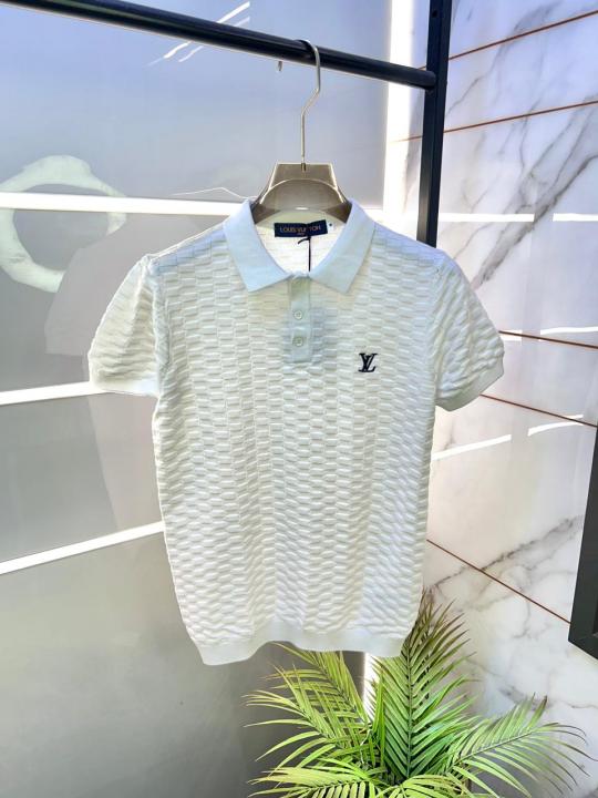 Home T-Shirts Loui s Vuitton Imported knitted Super Premium White Collar Neck Polo T-shirt F3467-WH