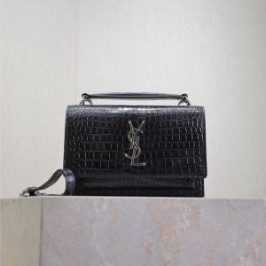 (YSL) Yves Saint Laurent Sunset In Black Silver Chain Crocodile-Embossed Damage Box