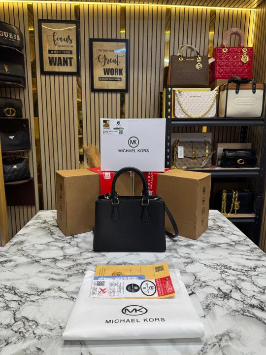 Michael_Kors Camille Satchel Hand Bag In Signature Logo With Double Og Box And Dust Bag (Black)