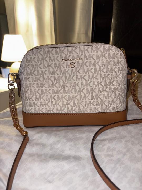 Michael_Kors Jet Set Charm Logo Dome Saffiano Leather Crossbody Bag (Beige-24032)