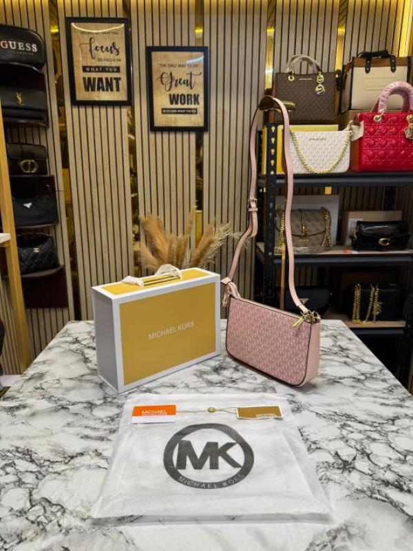 Michael_Kors Jet Set Pochette Signature Logo Crossbody Bag With Magnetic Box And Dust Bag (Pink-22318)