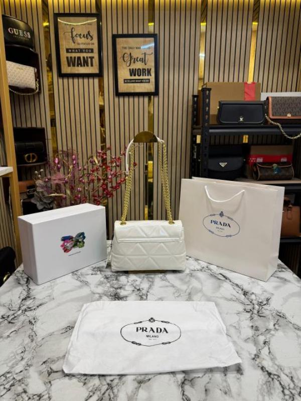 Prad_a Quilted Spectrum Shoulder Bag With Box And Dust Bag Including Carry Bag (9861-1 White)