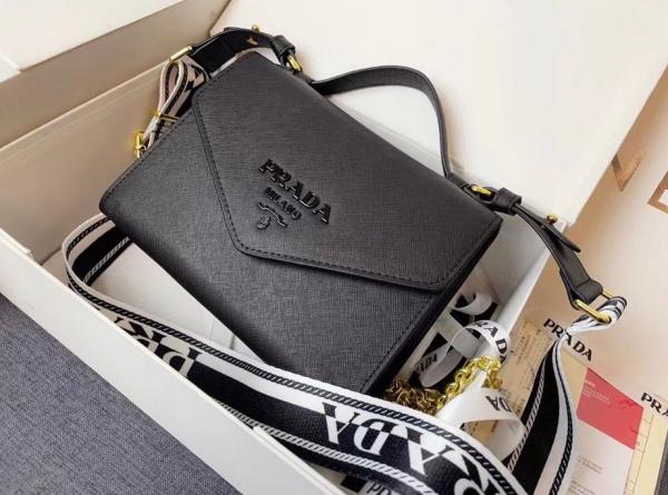 Prad_a Saffiano Leather Envelope Crossbody Bag With Box And Dust Bag (Black)
