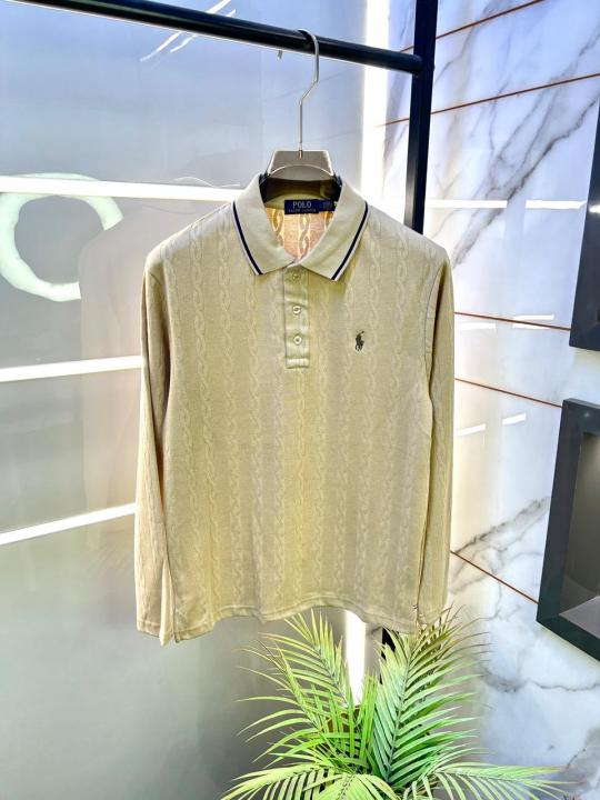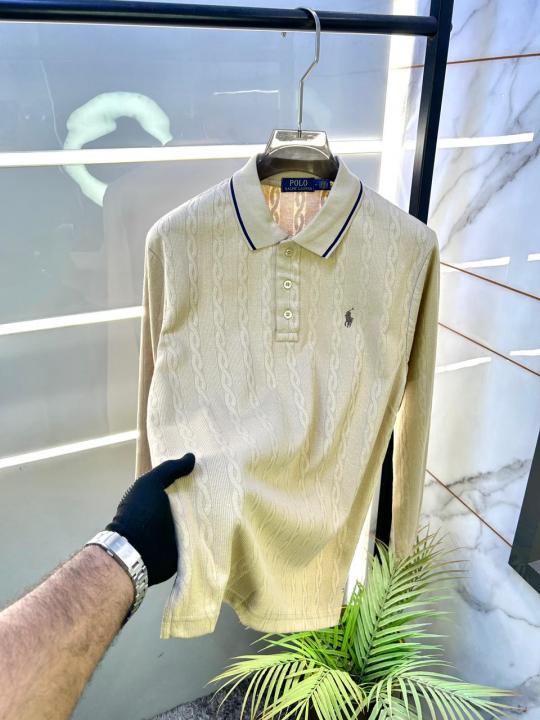 Home T-Shirts Ralph_Lauren Beige Knitted Full Sleeves Premium Collar T-shirt F2989-BE
