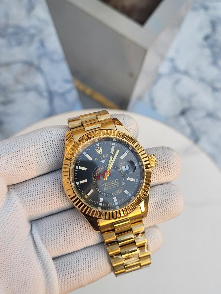 ROLEX SKY DWELLER GOLD BLACK DIAL